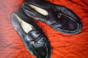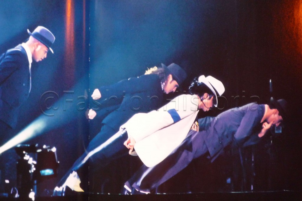 While most of his costumes were created from scratch, some staples of Jackson’s wardrobe were bought off-the-rack and then customized. Jackson would only dance in Florsheim shoes; having learned to dance as a boy in that brand, these were sacred to him. Bush wryly commented, “He could wear 18-karat gold leg guards and drape his furniture in Austrian crystal rhinestones, but don’t give Michael a pair of designer loafers.” Bush would merely replace the rubber soles with smoother leather, which would allow Jackson to moonwalk. Similarly, Jackson’s ribbed slouchy socks and waiter’s gloves were bought wholesale and Bush would deconstruct them, apply crystals, and re-sew them.