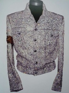 Reflective materials were key in drawing the audience gaze to Jacksons’ dancing hands and feet, simultaneously advertising opulence befitting the Prince of Pop: crystal rhinestones and semi-precious stones, silver, gold lame and actual 18-karat gold plate were favorites. Working with such high quality materials had the consequence of adding significant undesirable weight to costumes, and weight was critical: Jackson’s costumes needed to be progressively tighter and lighter over the course of a live performance to accommodate Jackson’s exhaustion and water weight-loss, which could shave up to five pounds and several inches off his lean frame.