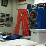 After a number of questions and lively discussions, our group moved back into the public display area to look at the clothing, artifacts and ephemera on view to the public, which included the company’s recent movie and celebrity tie-ins, as well as a conservation video, and a brief history of the company.