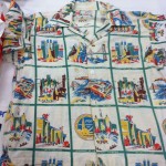 The weather couldn’t have been more idyllic, and when we arrived at the archives, a beautiful array of clothing from throughout Levi’s history was laid out before us. Ms. Downey had brought out her favorite pieces and generously peppered her talk with contextual information – how each was linked to Western or California history at large, company history, or cultural history. Downey discussed everything from early western work-wear and the origin of the riveted pant, to the company’s foray into Khaki pants, women’s denim wear on dude ranches, to early children’s wear during the baby boom of the 1950s, collaborations (including shirts for the 1939 Worlds Fair and Winchester hunting wear), and clear through to Mod clothing of the 1960s, Leisure suits of the 1970s, the 1980s collector trend in Japan, and up through Christian Siriano’s design for Project Runway.
